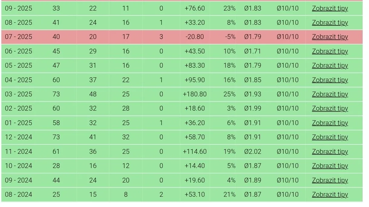Získej měsíční přístup do VIP skupiny s detailními analýzami, statistikami a komunitou lidí, kteří berou sázení vážně.